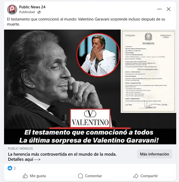 Solo hay un detalle que delata el engaño: la URL. No pertenece al dominio auténtico del medio. Pero claro, ¿Cuántas personas se fijan en eso cuando están leyendo una «noticia»?